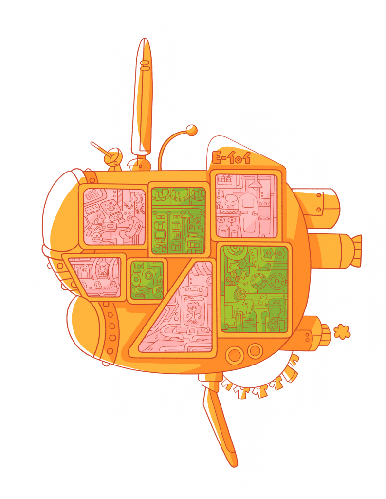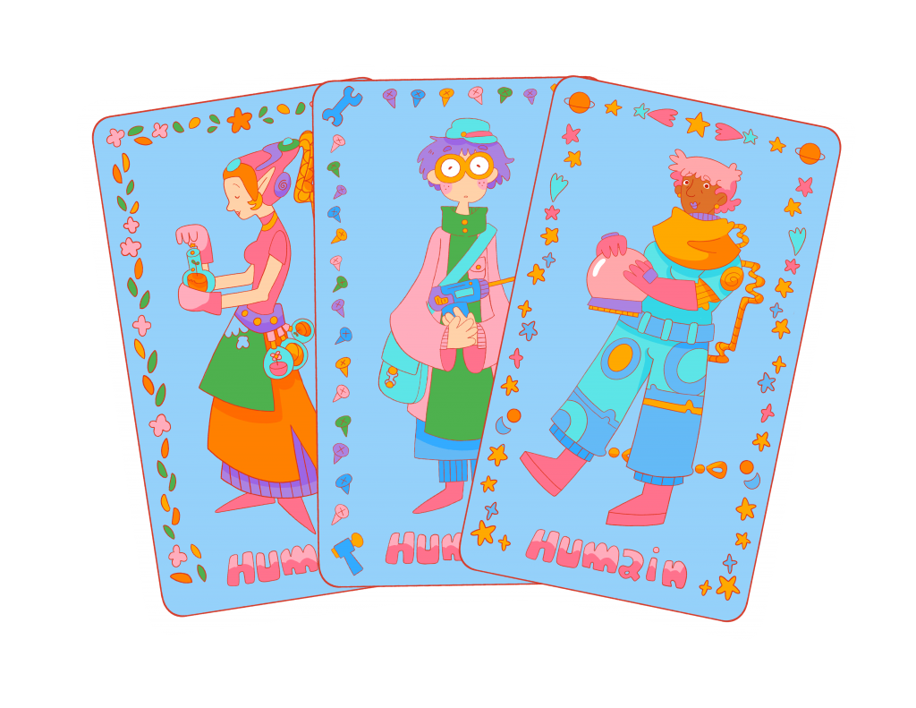 Deux membres de l’équipe de Bokra Sawa se sont penchées sur l’élaboration des cartes. Lily-Chance a par exemple proposé de dessiner le vaisseau spatial sous forme de plateau, où, à chaque fin de challenge, les pièces spécifiques gagnées, viendraient le compléter : toilettes, cuisine, sas de décompression, etc. La pièce est rose si elle a été gagnée par l’IA, verte si elle a été gagnée par les humains. Ce système ingénieusement pensé permet alors d’activer le circuit de récompense des joueur·euses à chaque challenge effectué, et leur donne une idée du reste des pièces à collectionner pour atteindre le vaisseau complet.